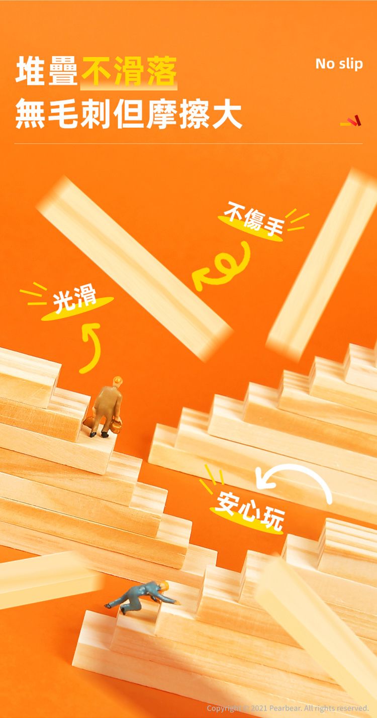 • 推疊不滑落無毛刺摩擦大,光滑、不傷手讓孩子安心玩。