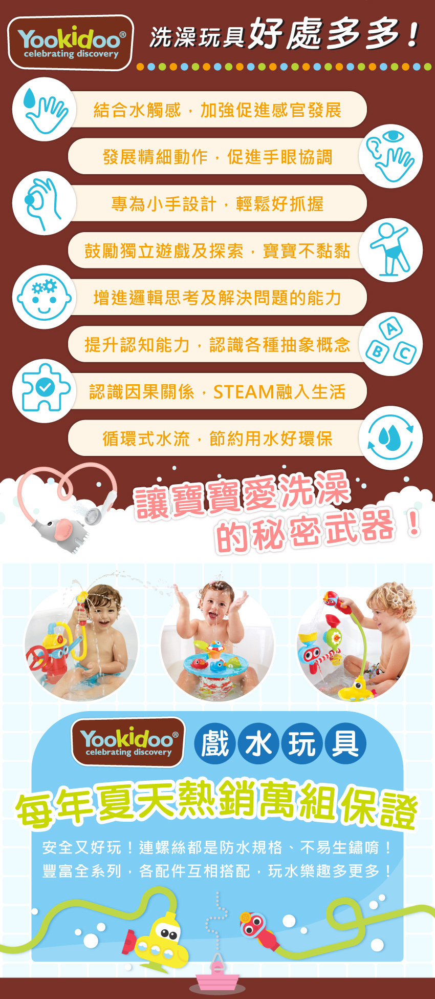 ● 鼓勵寶寶獨立遊戲和探索的洗澡玩具!