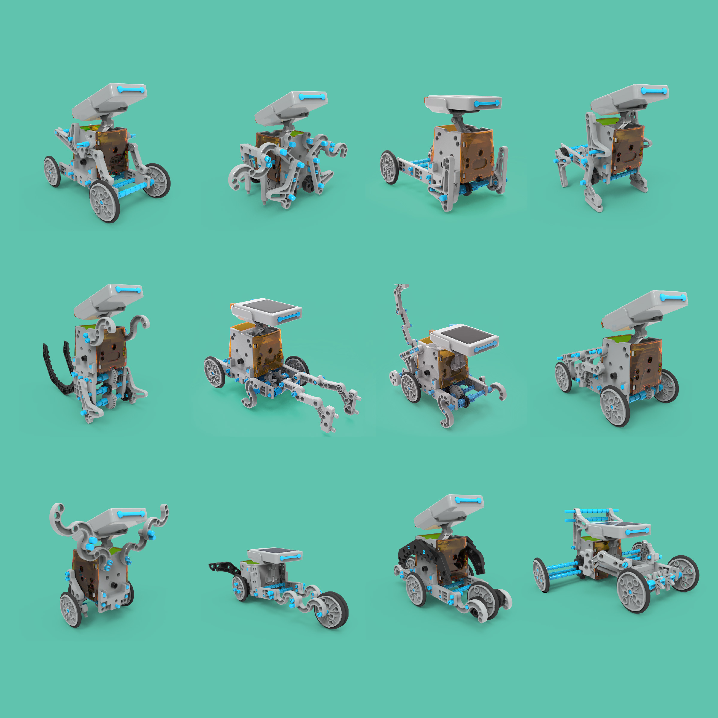 *197個元件,搭配12種機器人造型拼組步驟,創作出各種太陽能機器人!