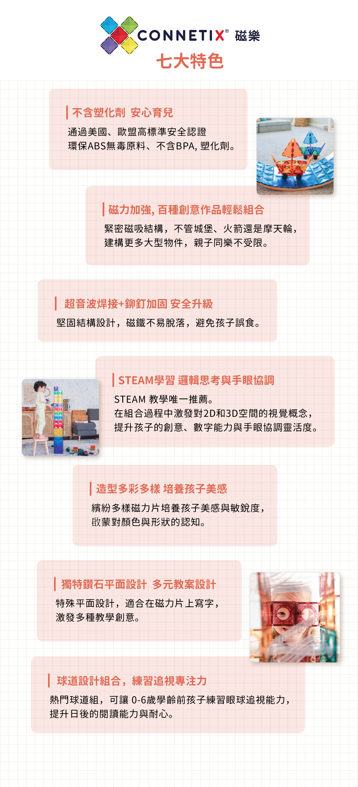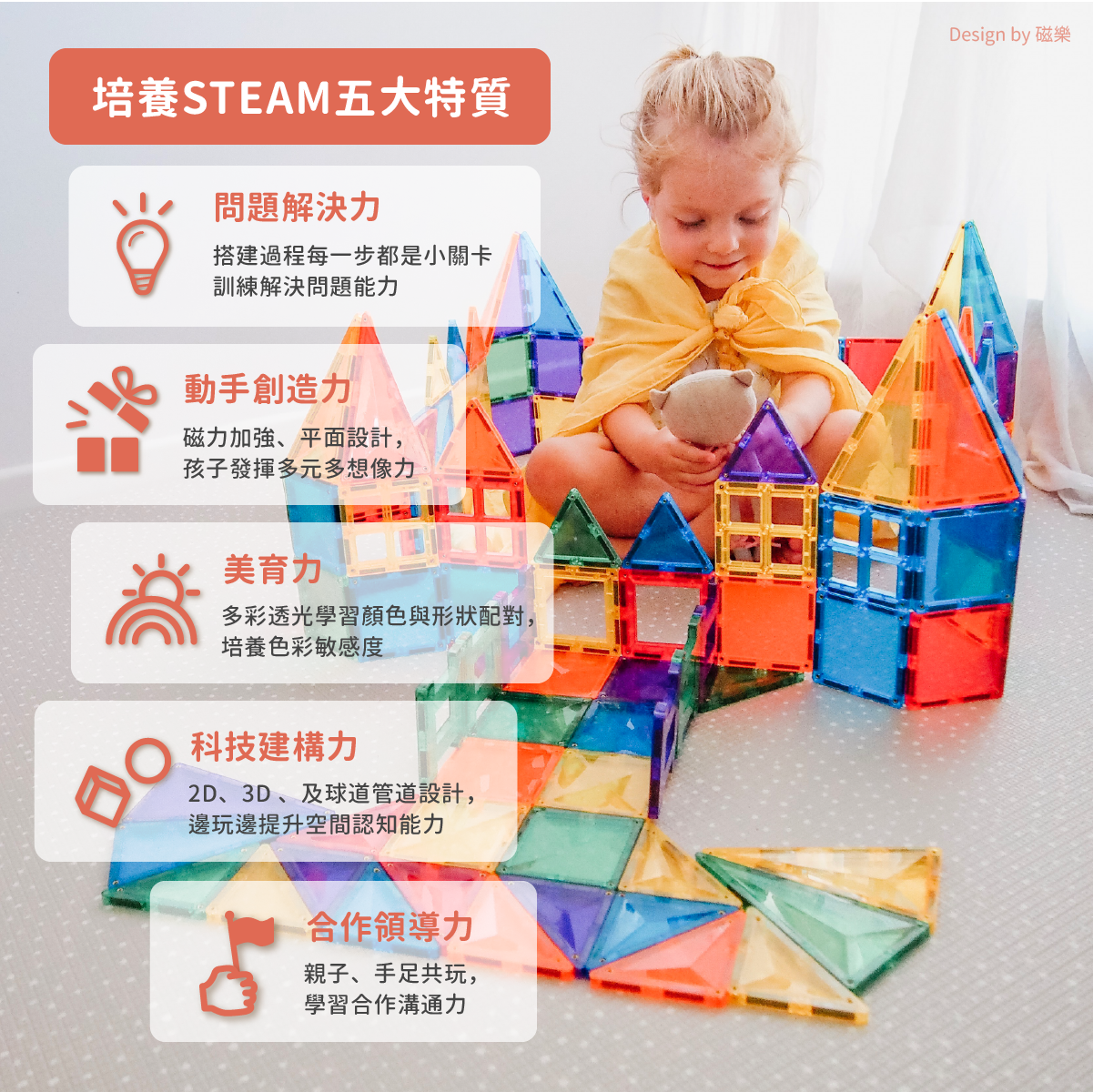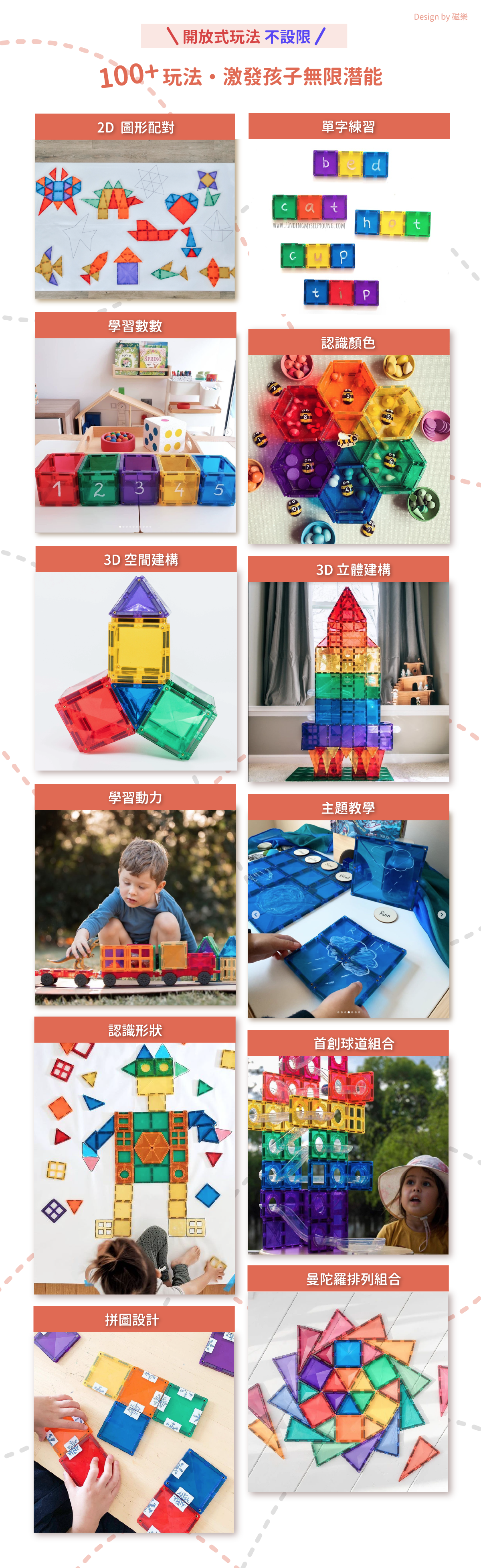• 磁力加強、平面設計,孩子發揮多元想像力