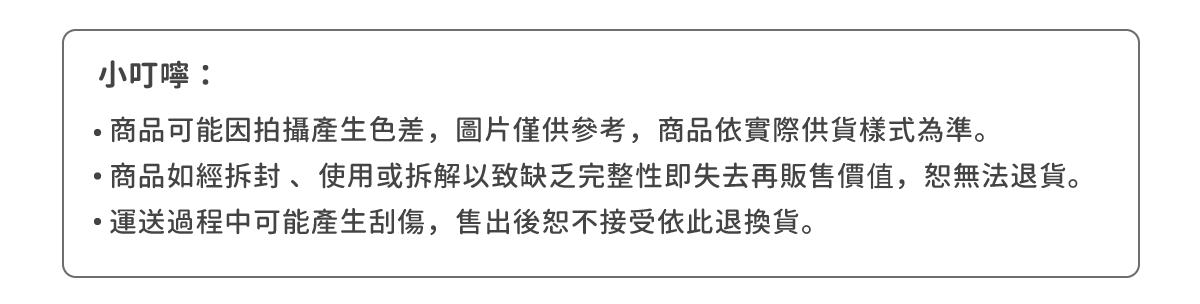 **Hey Kiddo 會善盡品檢責任,但產品出貨仍可能會有些微刮痕,完美主義者請勿下單。