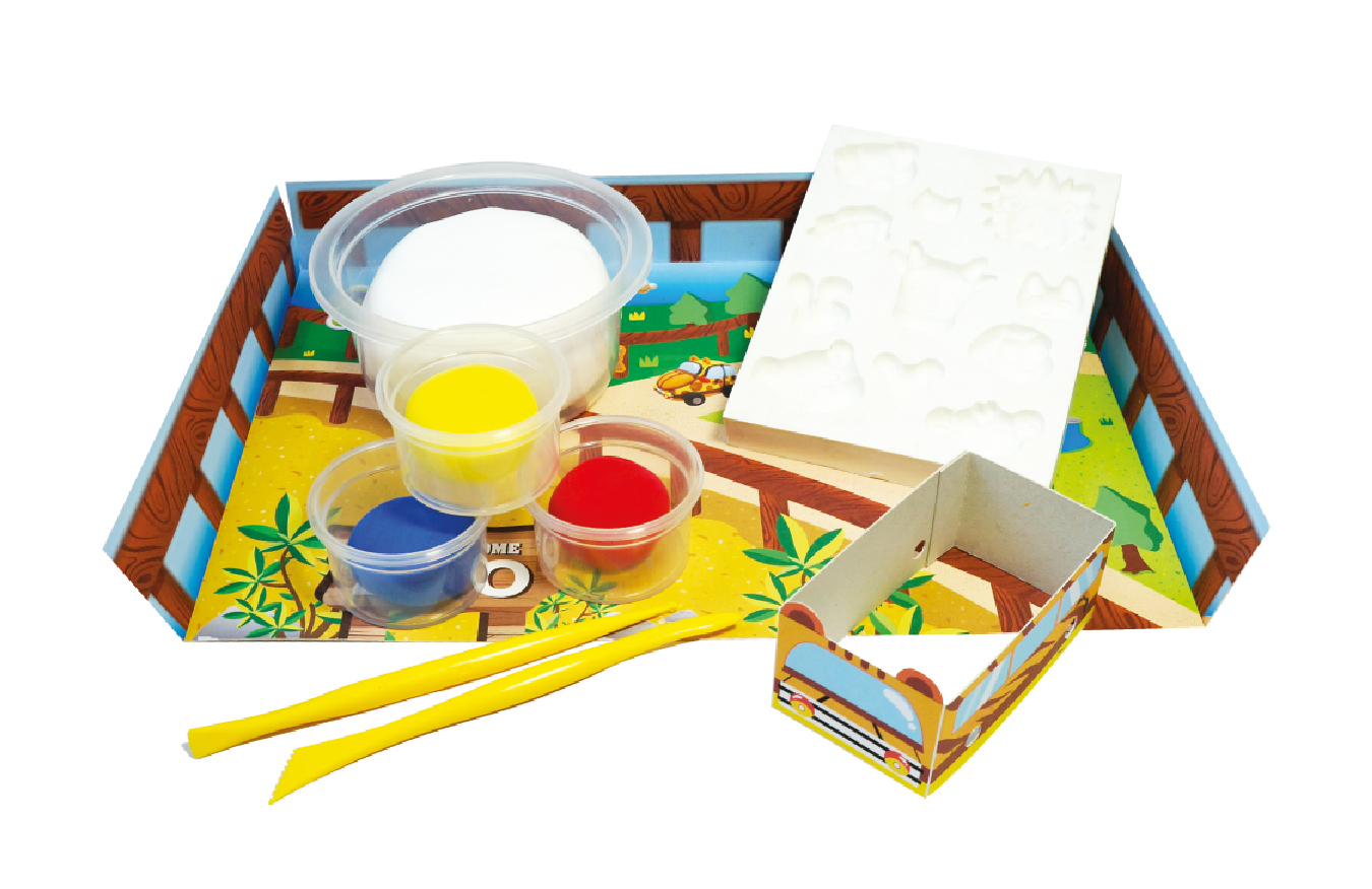 天使黏土(白色40g、紅色4g、黃色4g、藍色4g、)、動物軟模具、黏土工具、說明書