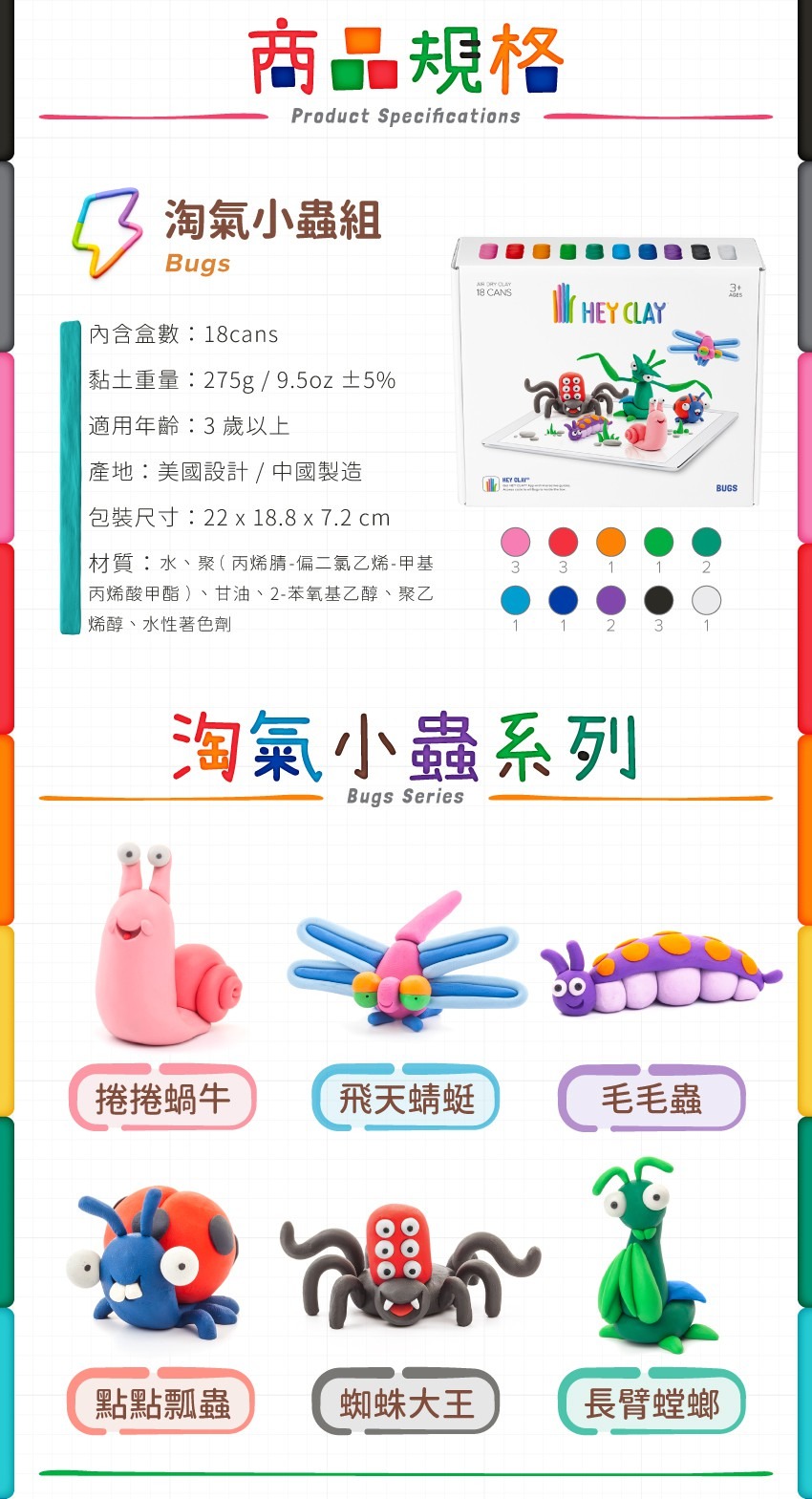 【美國Hey Clay 智塑輕黏土】淘氣小蟲組