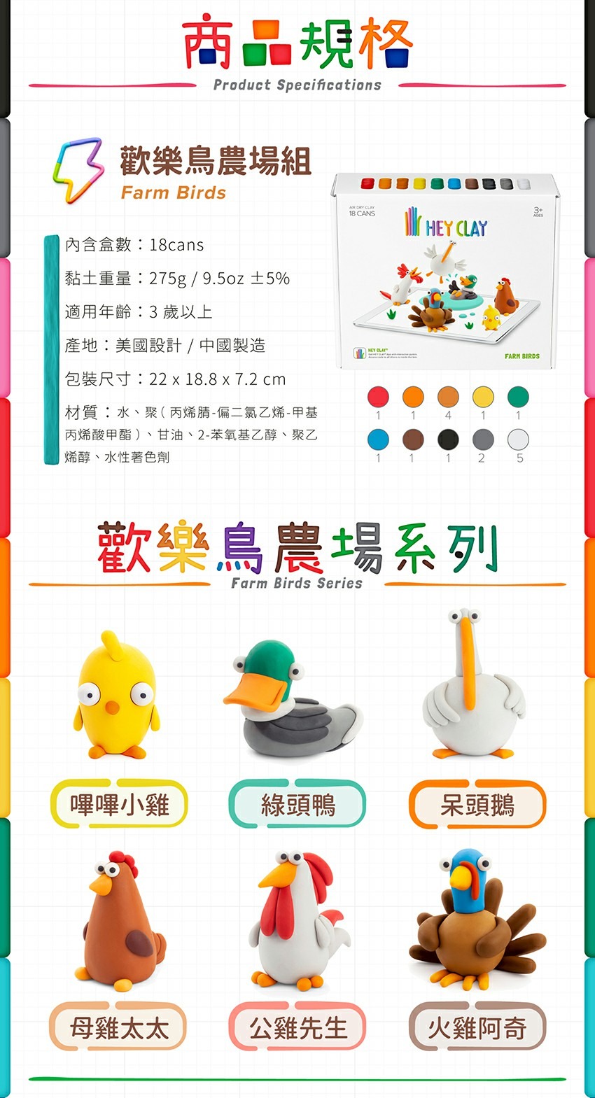 【美國Hey Clay 智塑輕黏土】歡樂鳥農場組