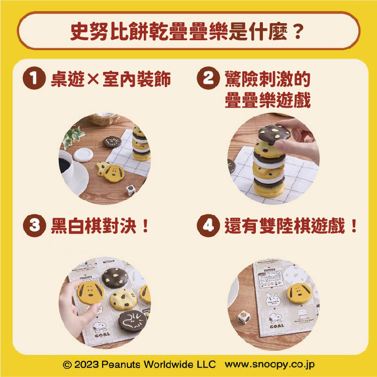 EyeUp是日本專門以設計可愛以及紓壓玩具的品牌,所創作的可愛商品都擁有許多各式不同的玩法及趣味性。 史努比餅乾疊疊樂 - 除了產品的內容豐富,搭配許多可愛的配件。多種緊張刺激的遊戲組合,適合全家大小一起挑戰。