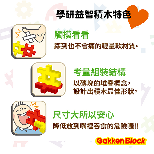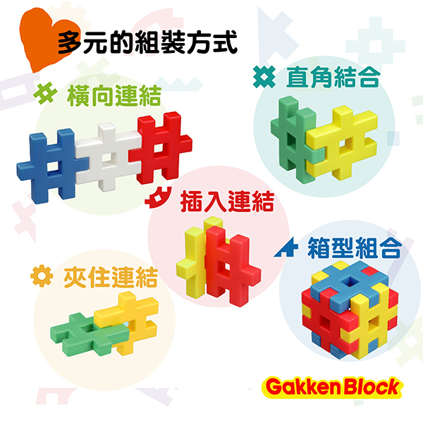 日本學研益智積木玩具的宗旨為「玩的長久」及「玩法無受限」。
