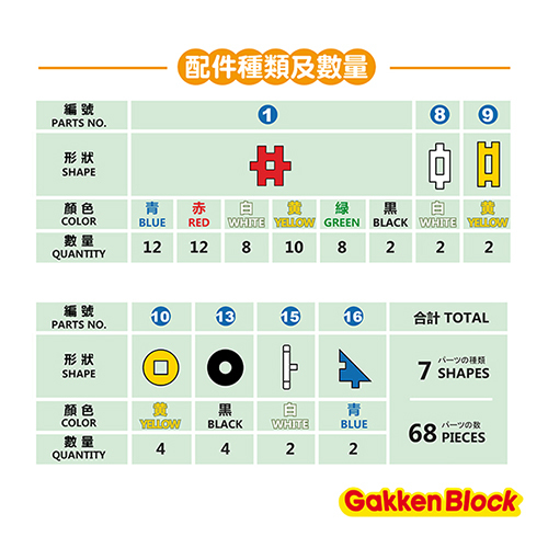 組合內容: 7種形狀共68個。
