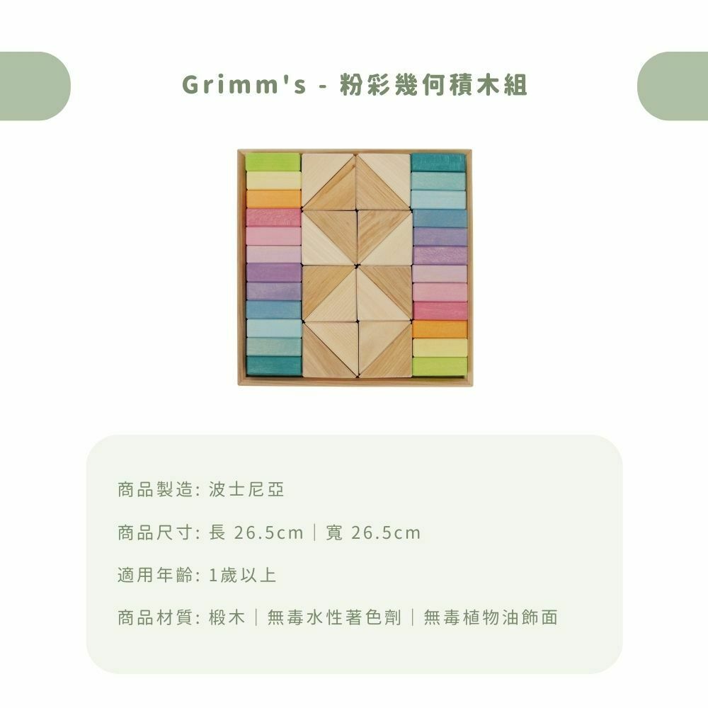 【德國 Grimm's 開放式多彩積木】粉彩幾何積木組