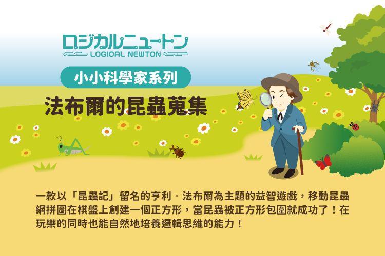 「小小科學家」系列藉由「思考」的遊戲,讓孩子快樂且自然地培養腦力、觀察力、分析能力和想像力。透過益智體驗來培育求知慾與思考能力,在玩樂的同時培養孩子邏輯思維的能力,快與家人朋友們一起將昆蟲蒐集起來吧!