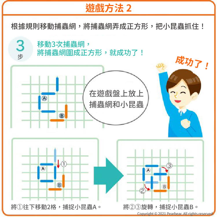 • 依照規則利用捕蟲網前後左右移動,捉捕小昆蟲