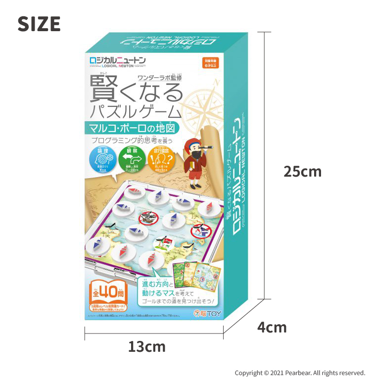 一款以「馬可波羅」為主題的益智遊戲。將羅盤形狀的拼圖從問題卡的起點放置到正確目標,並思考移動的方向和位置!