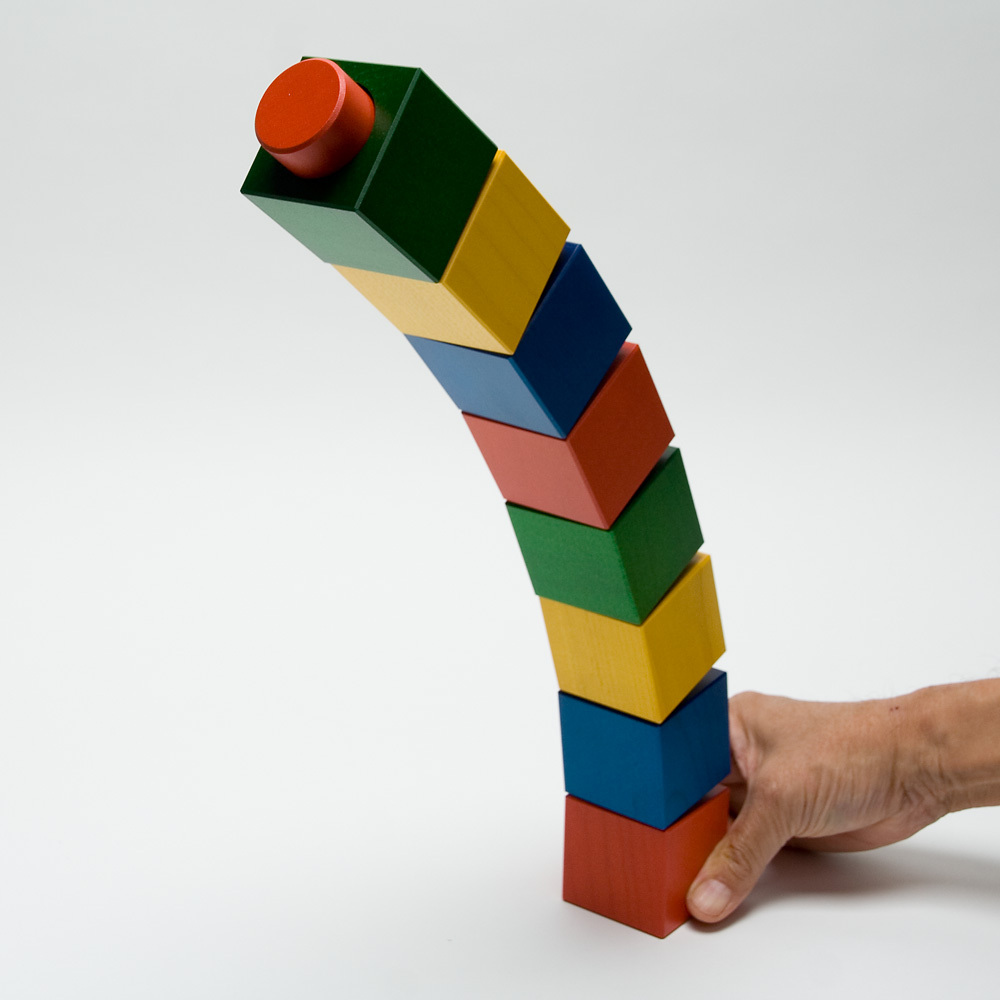 看起來像普通堆疊般的積木;利用半個圓柱體,改變堆疊積木的深度來變一場魔術吧!