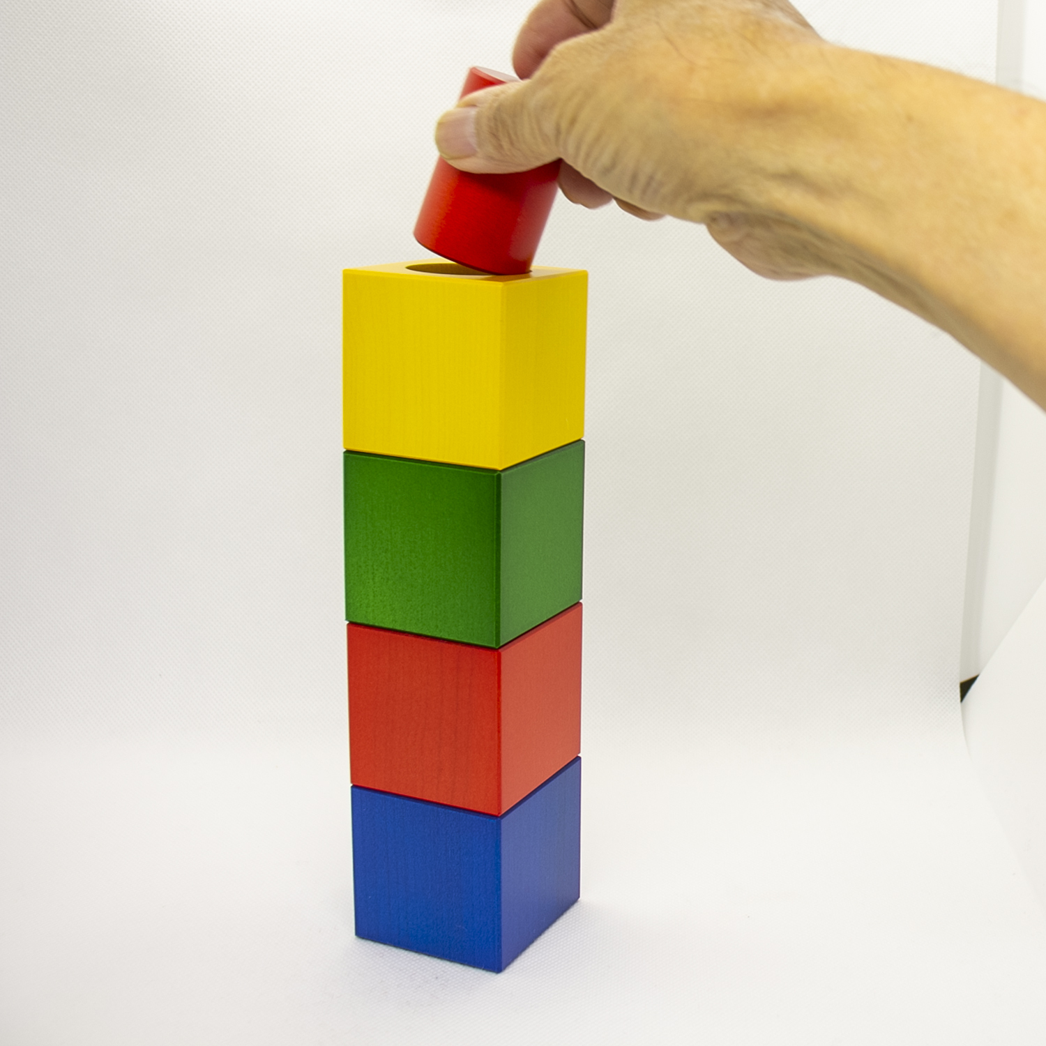 5公分高的立方體,因其大小和形狀易於小朋友抓握及堆疊!