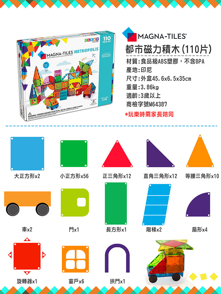 • 磁力積木好處多多,利於兒童大腦發展,促進手眼協調、解決問題的技巧、邏輯訓練、精細運動技能