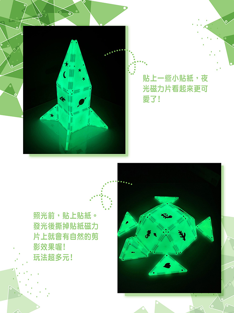 • 磁力積木好處多多,利於兒童大腦發展,促進手眼協調、解決問題的技巧、邏輯訓練、精細運動技能