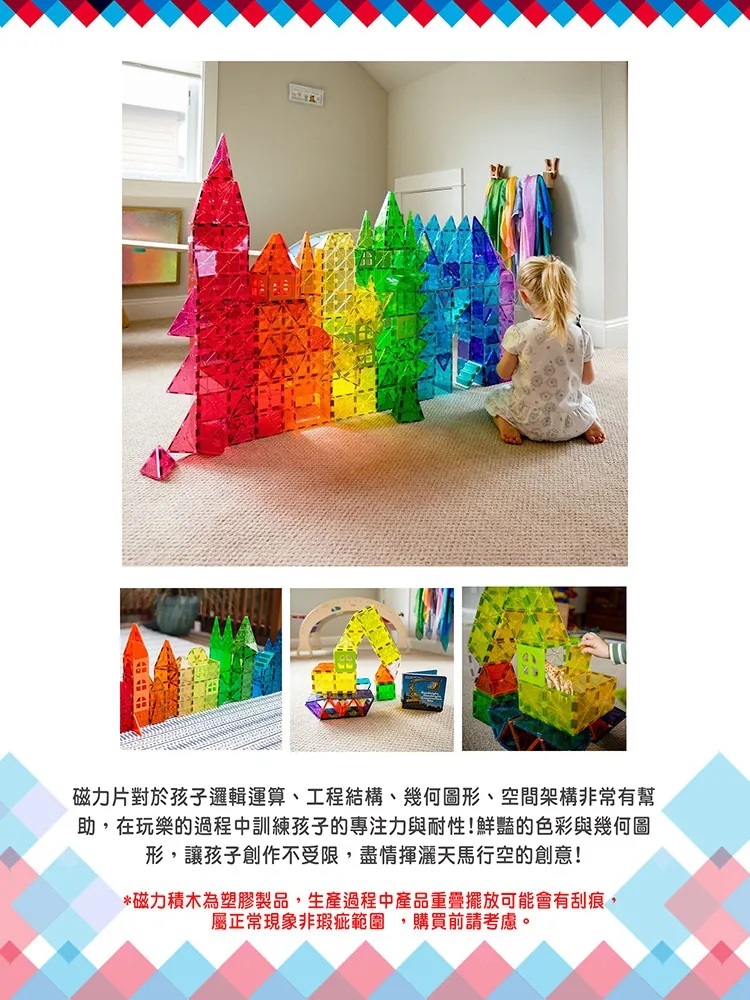 • 磁力積木好處多多,利於兒童大腦發展,促進手眼協調、解決問題的技巧、邏輯訓練、精細運動技能