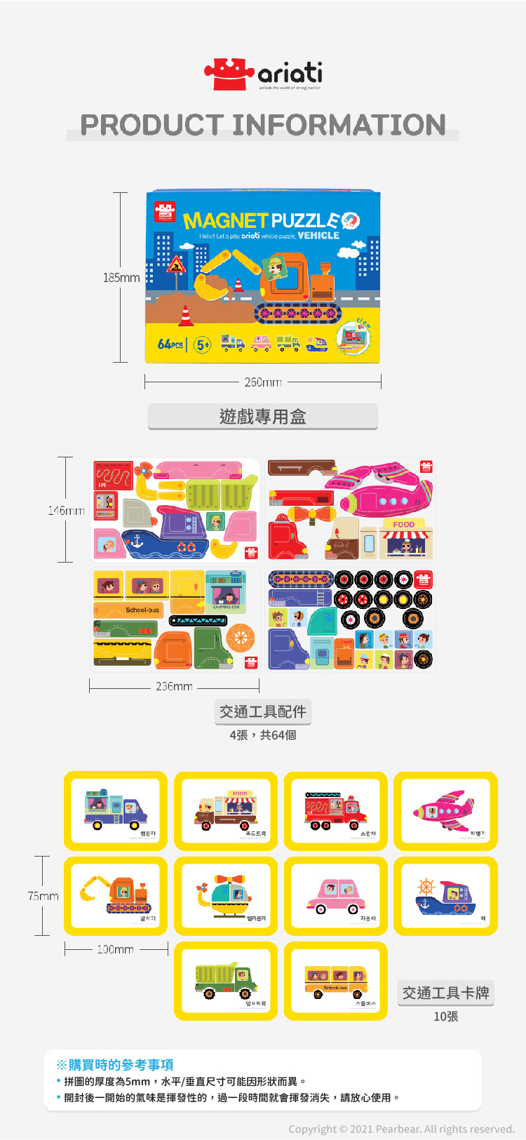 【韓國 Ariati 磁貼教具】拼圖書-交通工具