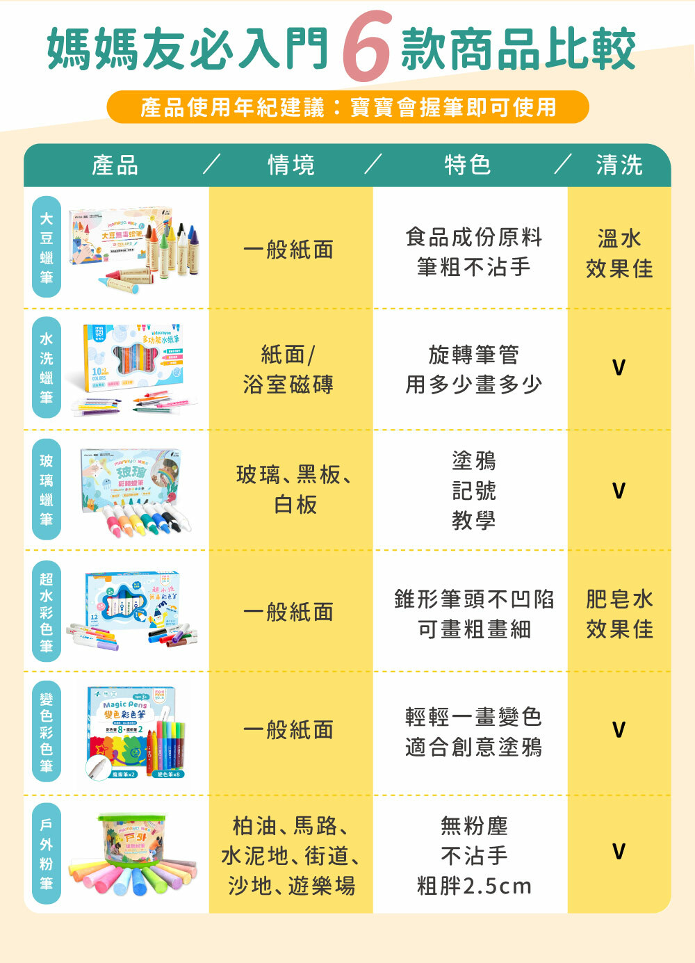 • 不怕畫髒衣物輕鬆水洗