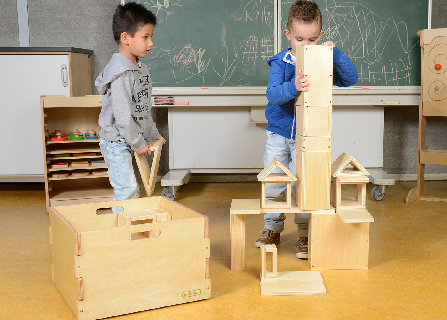 透過積木推疊可創造想像力,對幼兒在建構過程中,對圖形特點,分割與組合產生直覺的認知。