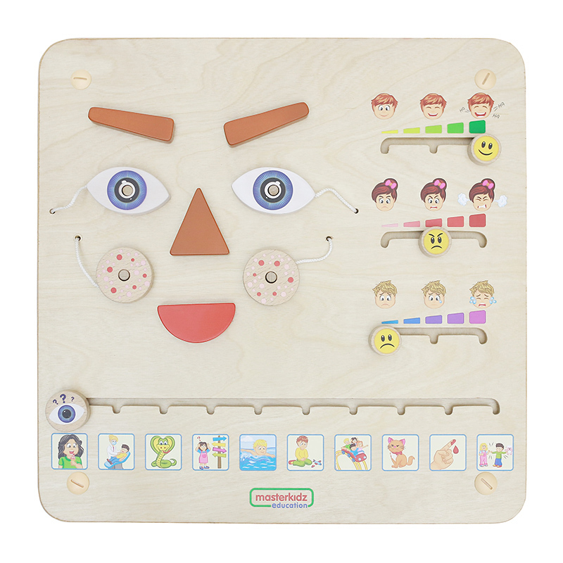 鼓勵小孩表達自己的情緒,遊戲板有10個事物場景,也可讓小孩擺出當下自己的心情,增加大人對他們的了解。