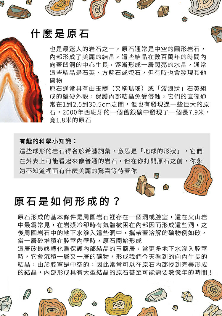 每個礦物原石裡都有未知的水晶,敲開礦物原石獲得裡面的驚喜!