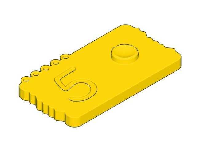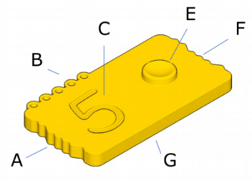 除了顯示數字5之外,上面還有"算數點"來讓小孩可以一個一個數,這樣的用意是很輕鬆能讓小孩了解"數"與"量"之間的連結。除此之外,每個單位的算術點形狀都不相同,比如說十位數是以三角形表現的,百位數用房屋,千位數就用方形。這樣的好處是讓孩子能知道,這四種形狀代表的意義不同。