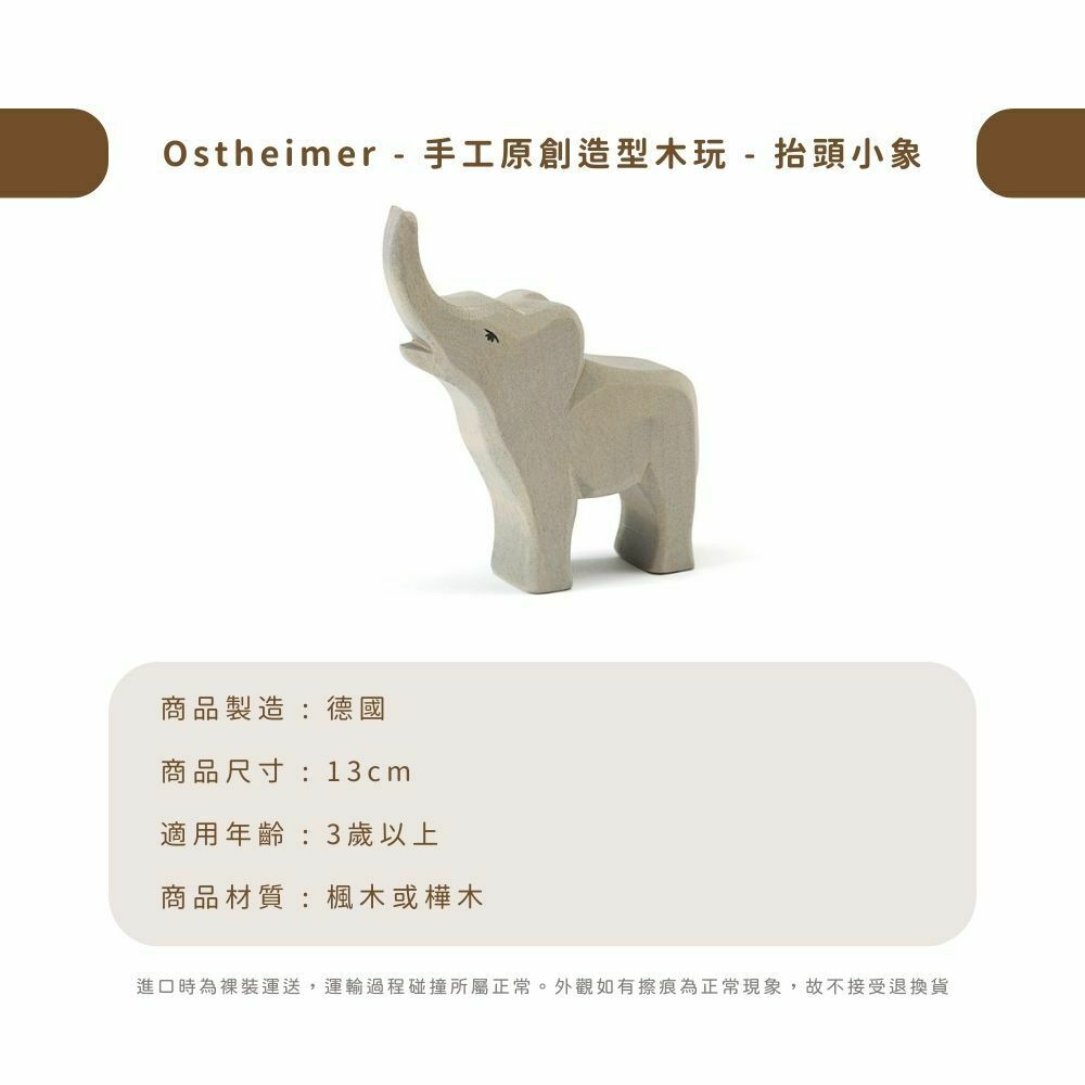 【德國 OSTHEIMER 手工原木積木】抬頭小象