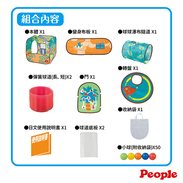 內附50顆小球、彈簧球道、滑球道及豐富的「可愛動物圖案」,充分滿足寶寶「好奇心」
