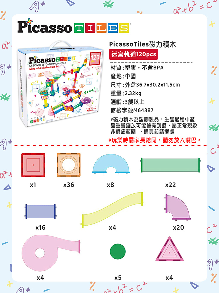 【美國 PicassoTiles 磁力積木】迷宮軌道120pcs