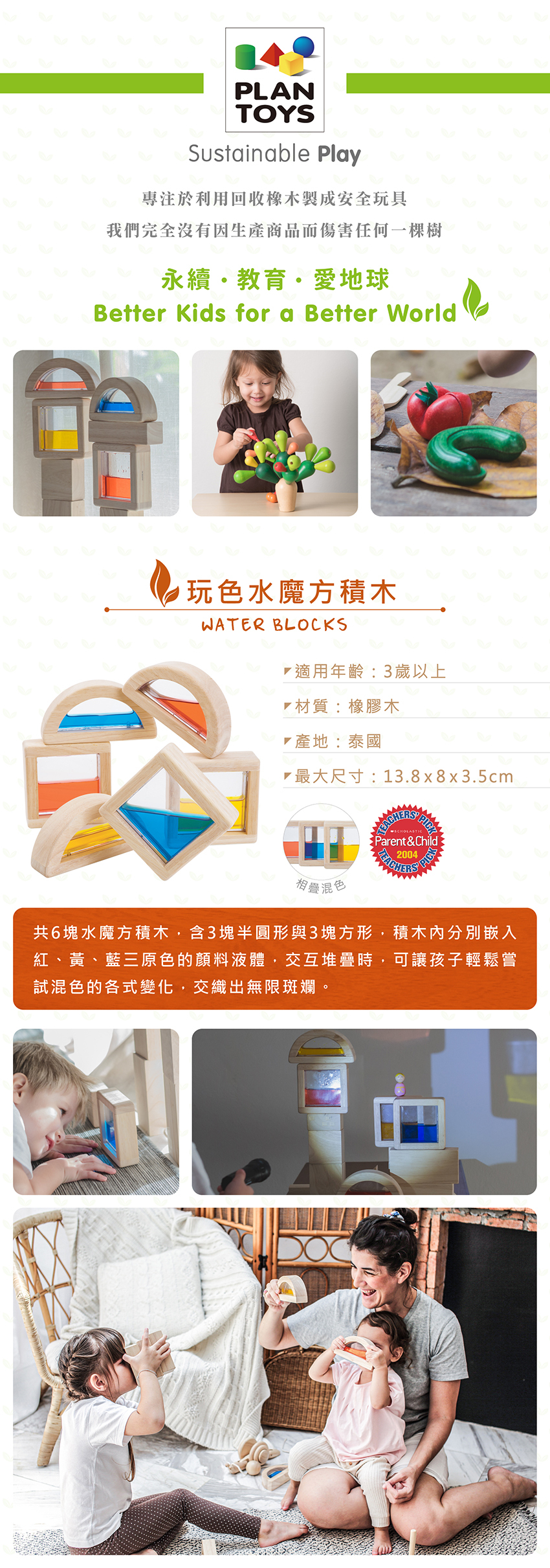 木製玩具不僅比塑膠製玩具更持久,而且最終是可以回歸土壤的自然素材。不僅對寶寶友善,也對地球友善。
