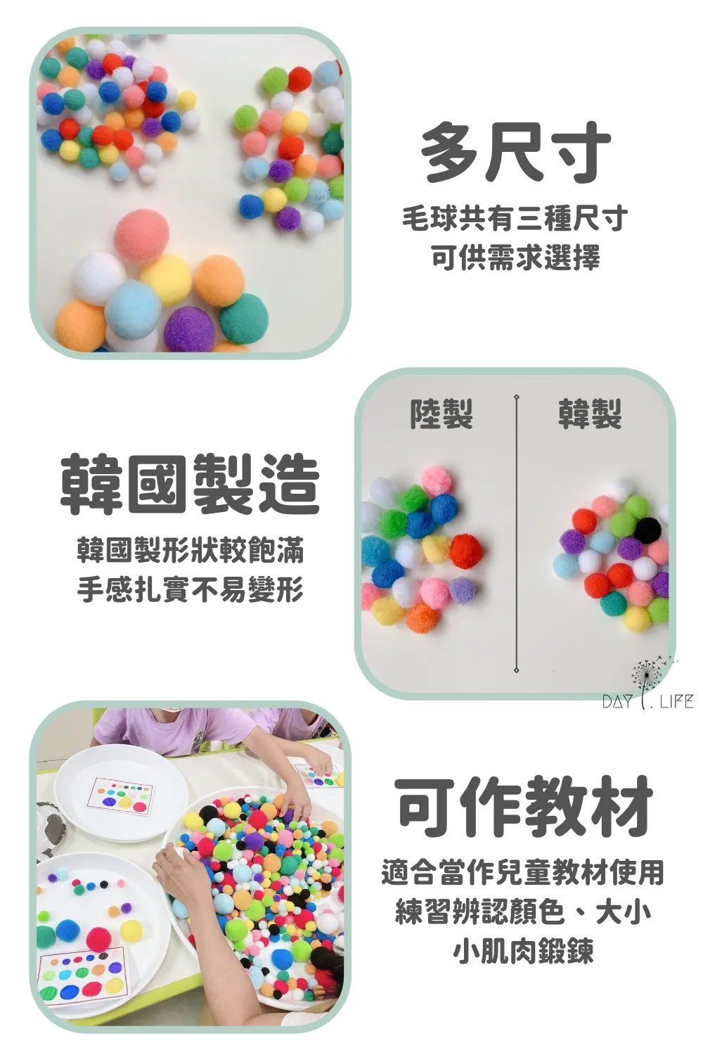 韓國製的棉球手感和紮實度都不同,用料實在、色彩鮮豔且不易變形。