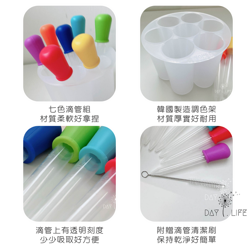 -內容:七色滴管+滴管刷+收納盒/七色圓筒收納水架