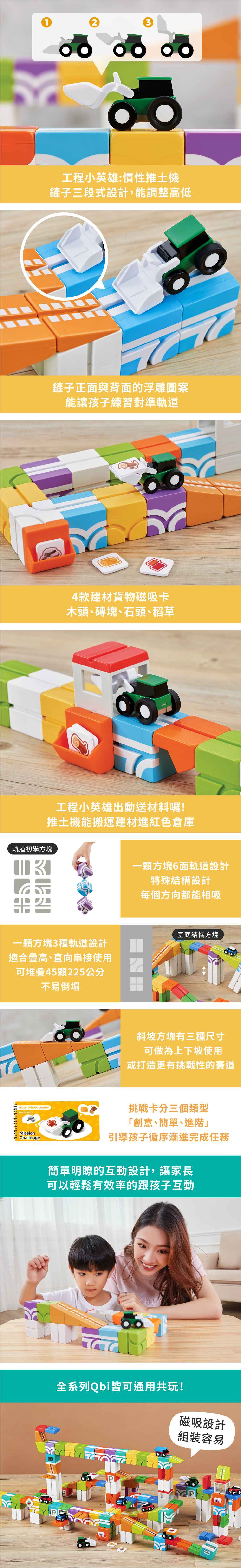 Qbi是一款結合積木與軌道小車的益智玩具,可以讓孩子發揮想像力與創造力,自由的組建各種形狀,開發無限可能!