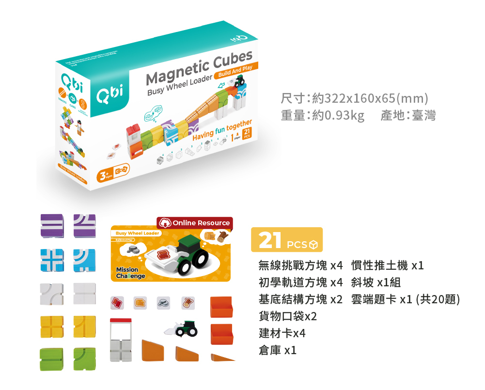 【Qbi 磁吸軌道玩具】探索系列-3歲|工程小英雄:軌道練習組