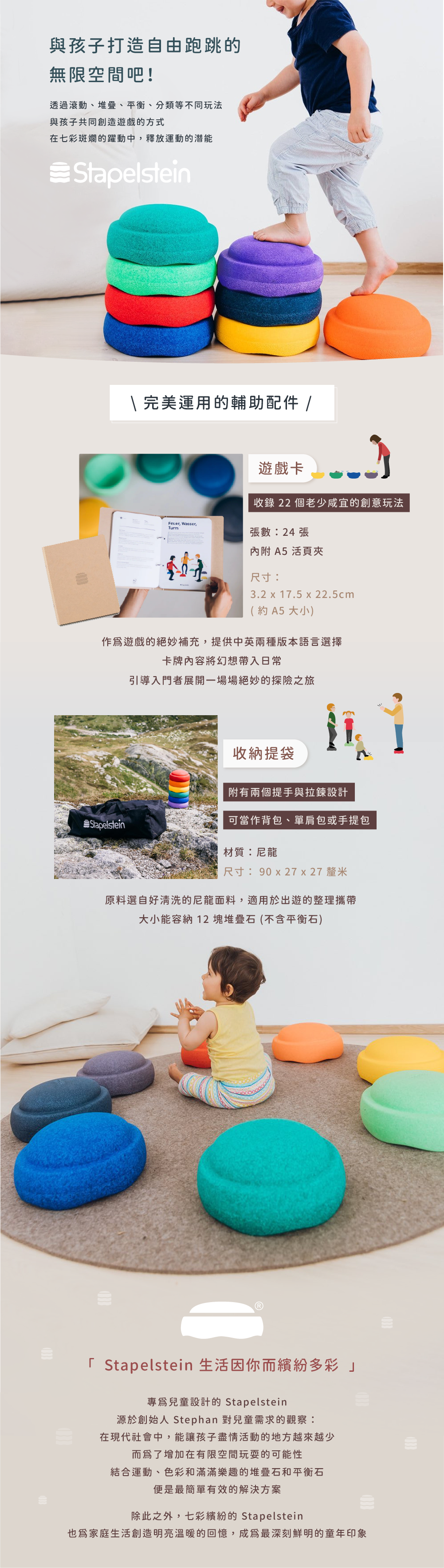 • Stapelstein提供輔助配件,各國語言遊戲卡、收納提袋。