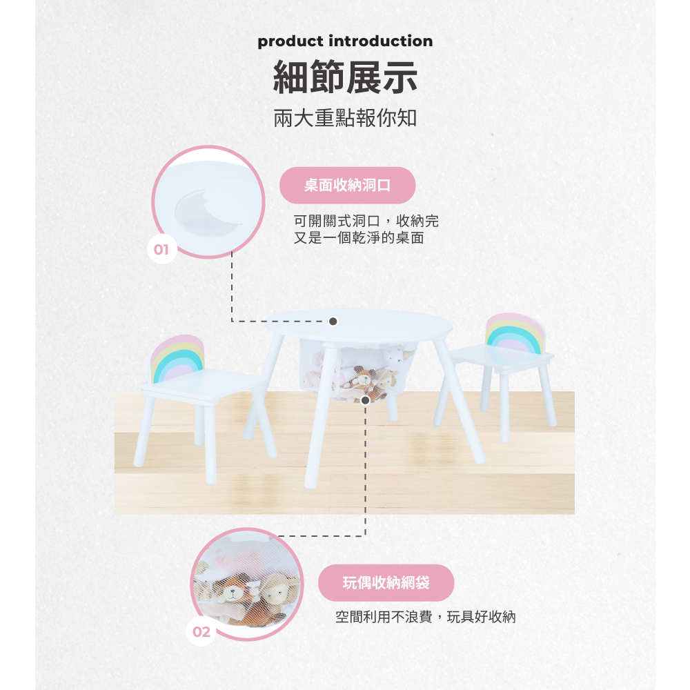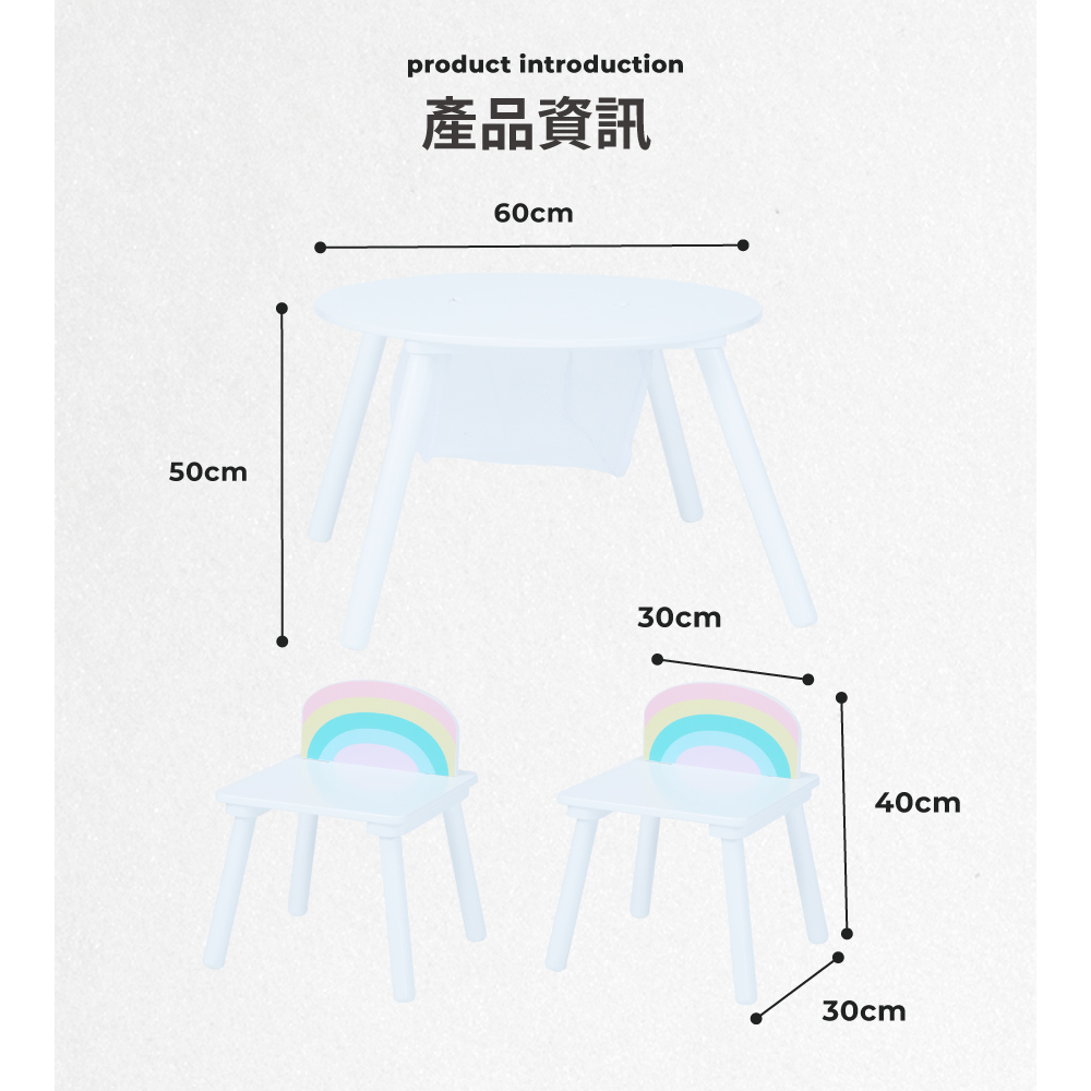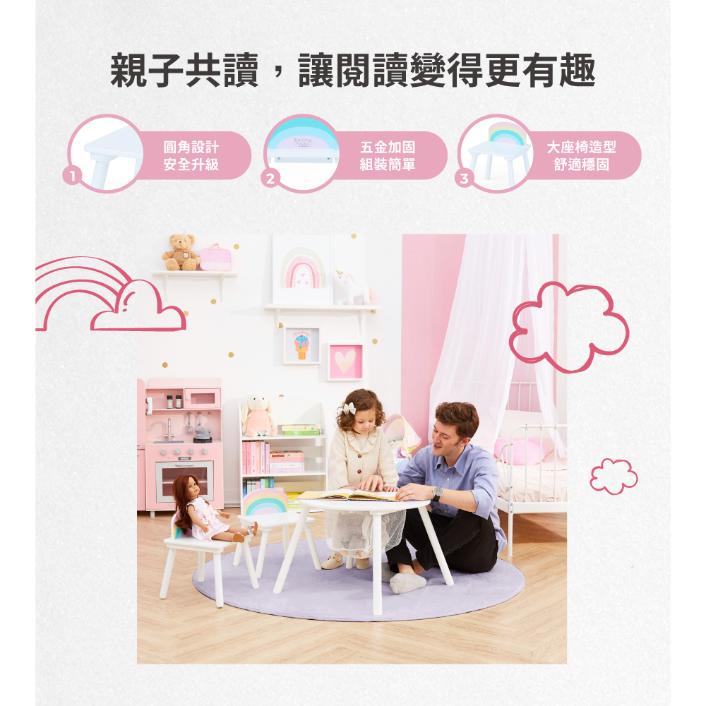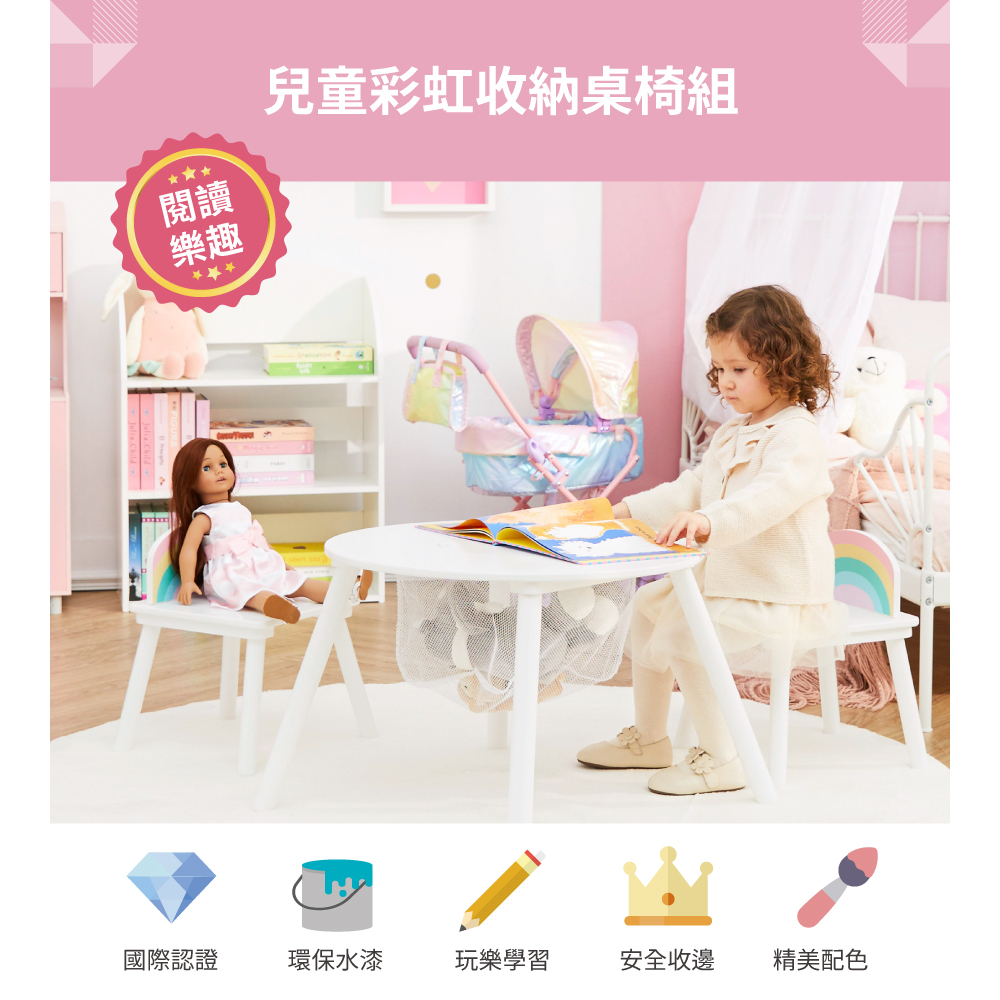 【美國 Teamson】彩虹兒童收納木製桌椅組-白色