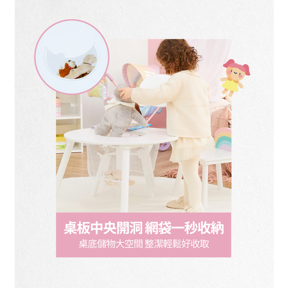 • 圓形的白色桌子適合孩子們玩耍、吃飯、勞作!