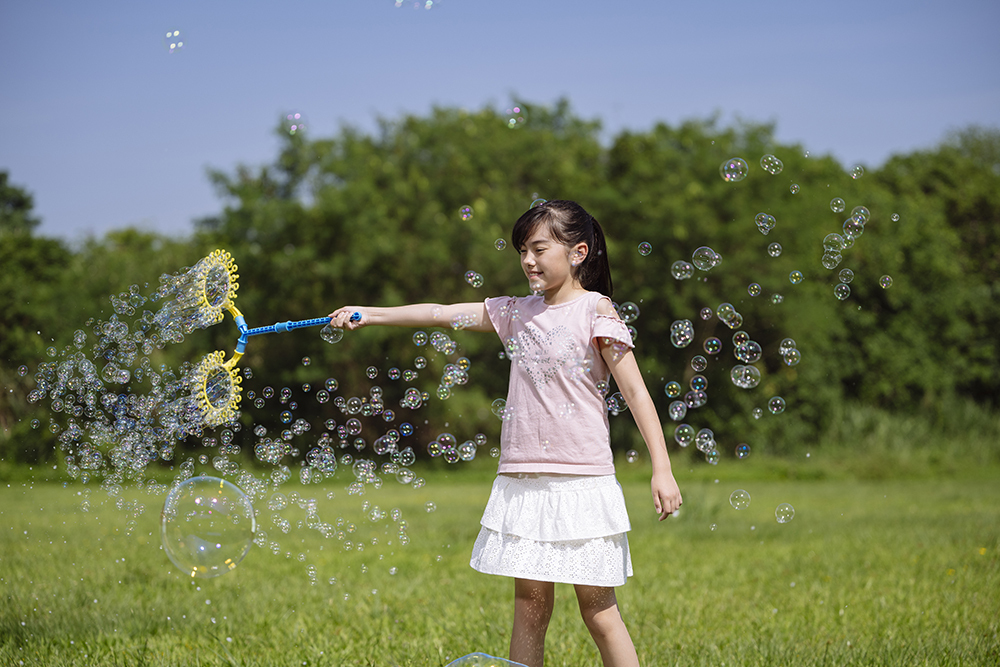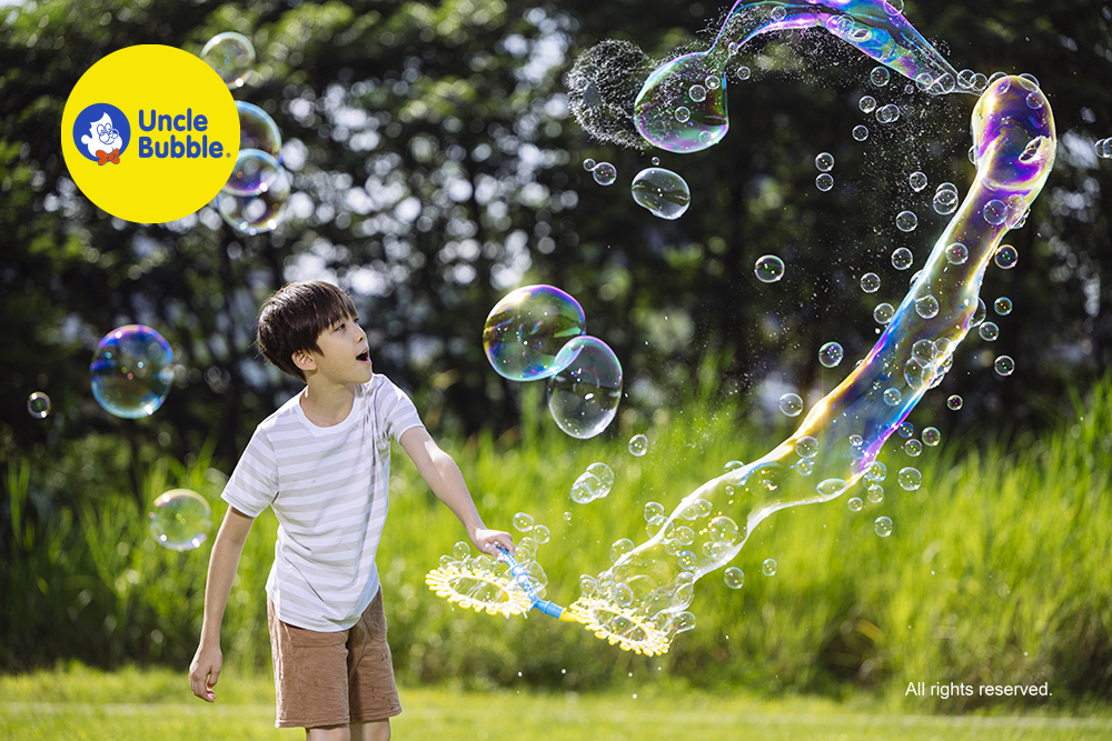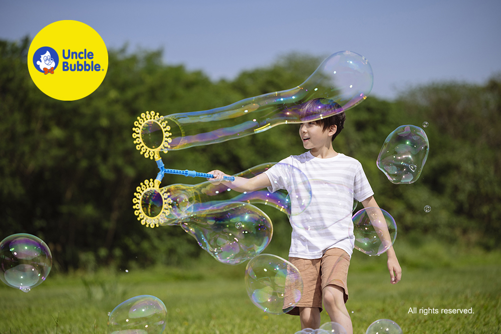 4.拿起風火輪泡泡棒,慢慢揮動是大泡泡,快速揮動是小泡泡。