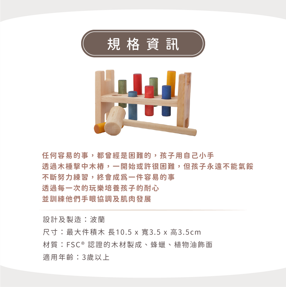 【波蘭 Wooden Story 手工木製積木】原木敲打台 - Rainbow