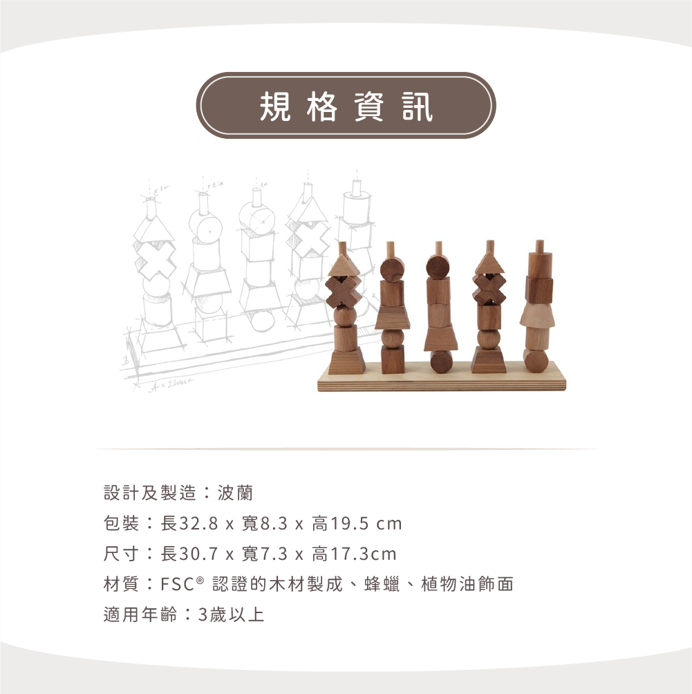 【波蘭 Wooden Story 手工木製積木】幾何疊疊樂-Natural