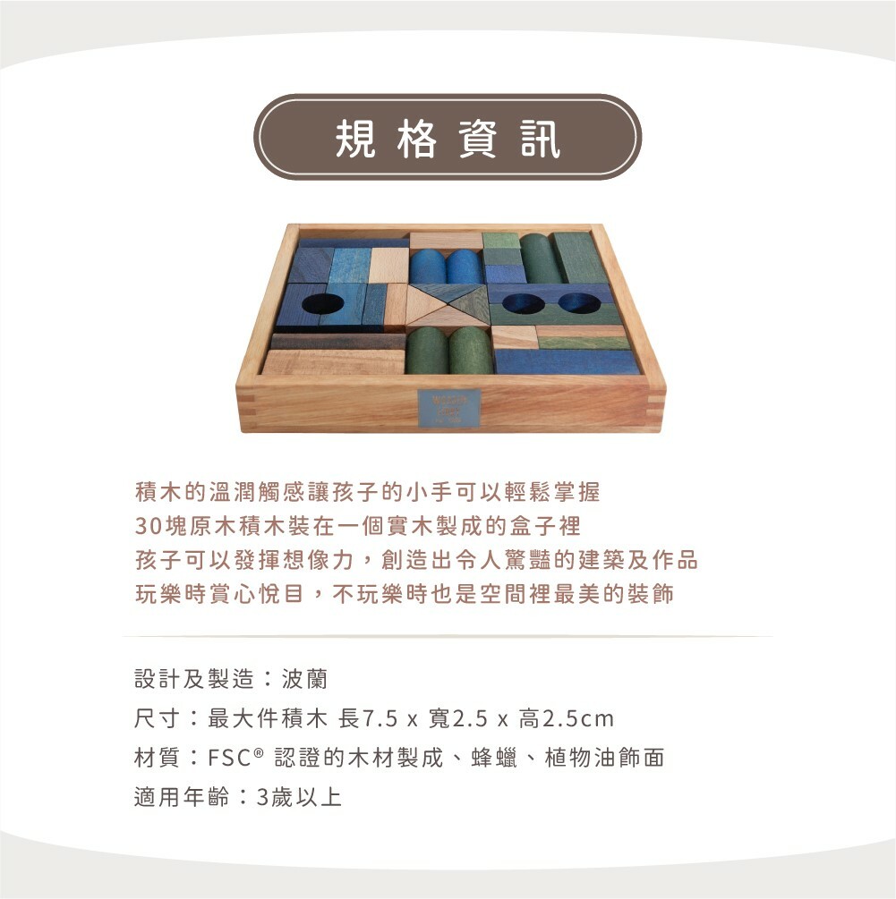【波蘭 Wooden Story 手工木製積木】冷色積木組-30pcs